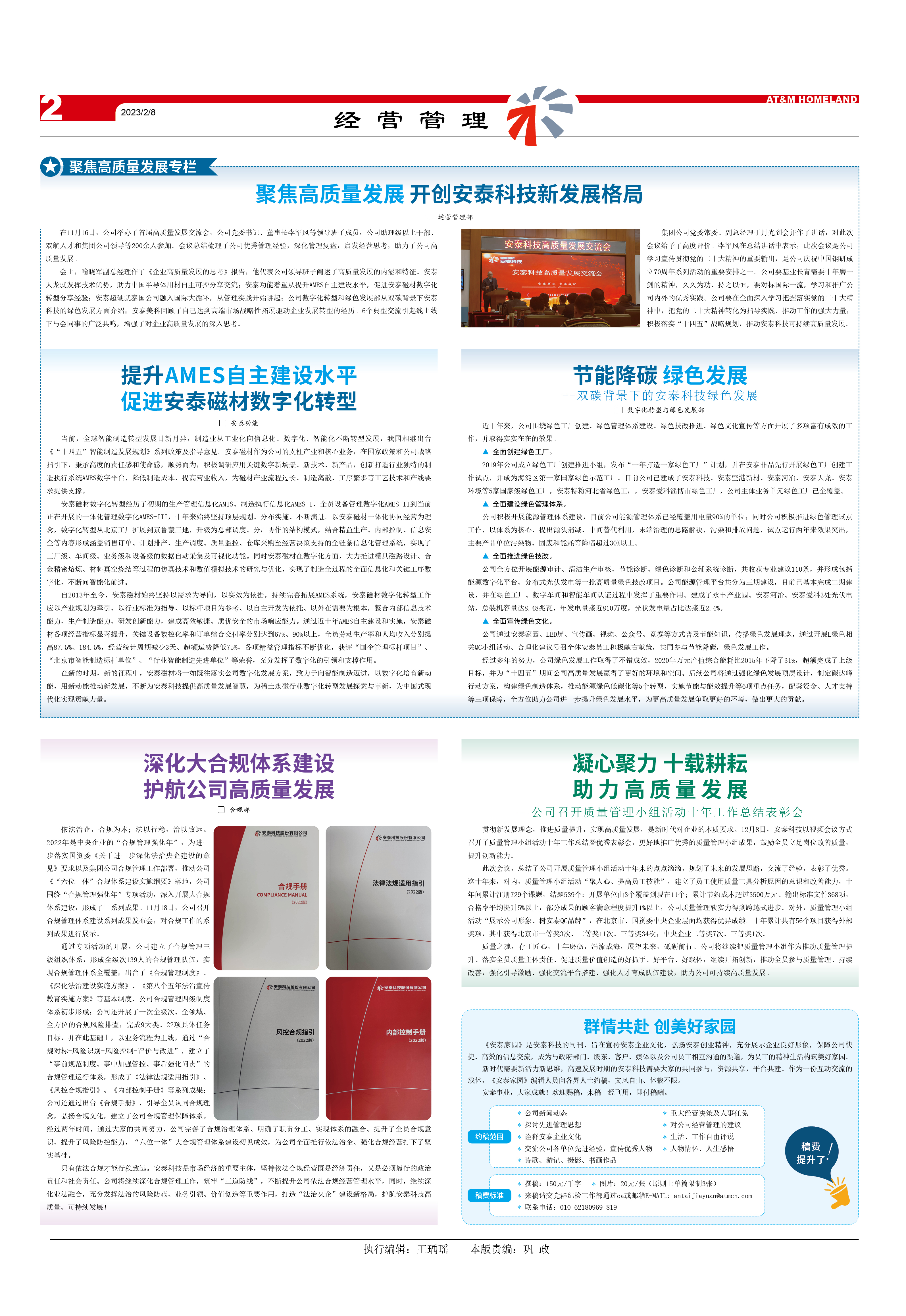 會上,喻曉軍副總經(jīng)理作了《企業(yè)高質(zhì)量發(fā)展的思考》報告,他代表公司領(lǐng)導班子闡述了高質(zhì)量發(fā)展的內(nèi)涵和特征。安泰天龍就發(fā)揮技術(shù)優(yōu)勢,助力中國半導體用材自主可控分享交流;安泰功能著重從提升AMES自主建設水平,促進安泰磁材數(shù)字化轉(zhuǎn)型分享經(jīng)驗;安泰超硬就泰國公司融入國際大循環(huán),從管理實踐開始講起;公司數(shù)字化轉(zhuǎn)型和綠色發(fā)展部從雙碳背景下安泰科技的綠色發(fā)展方面介紹;安泰美科回顧了自己達到高端市場戰(zhàn)略性拓展驅(qū)動企業(yè)發(fā)展轉(zhuǎn)型的經(jīng)歷。6個典型交流引起線上線下與會同事的廣泛共鳴,增強了對企業(yè)高質(zhì)量發(fā)展的深入思考。
