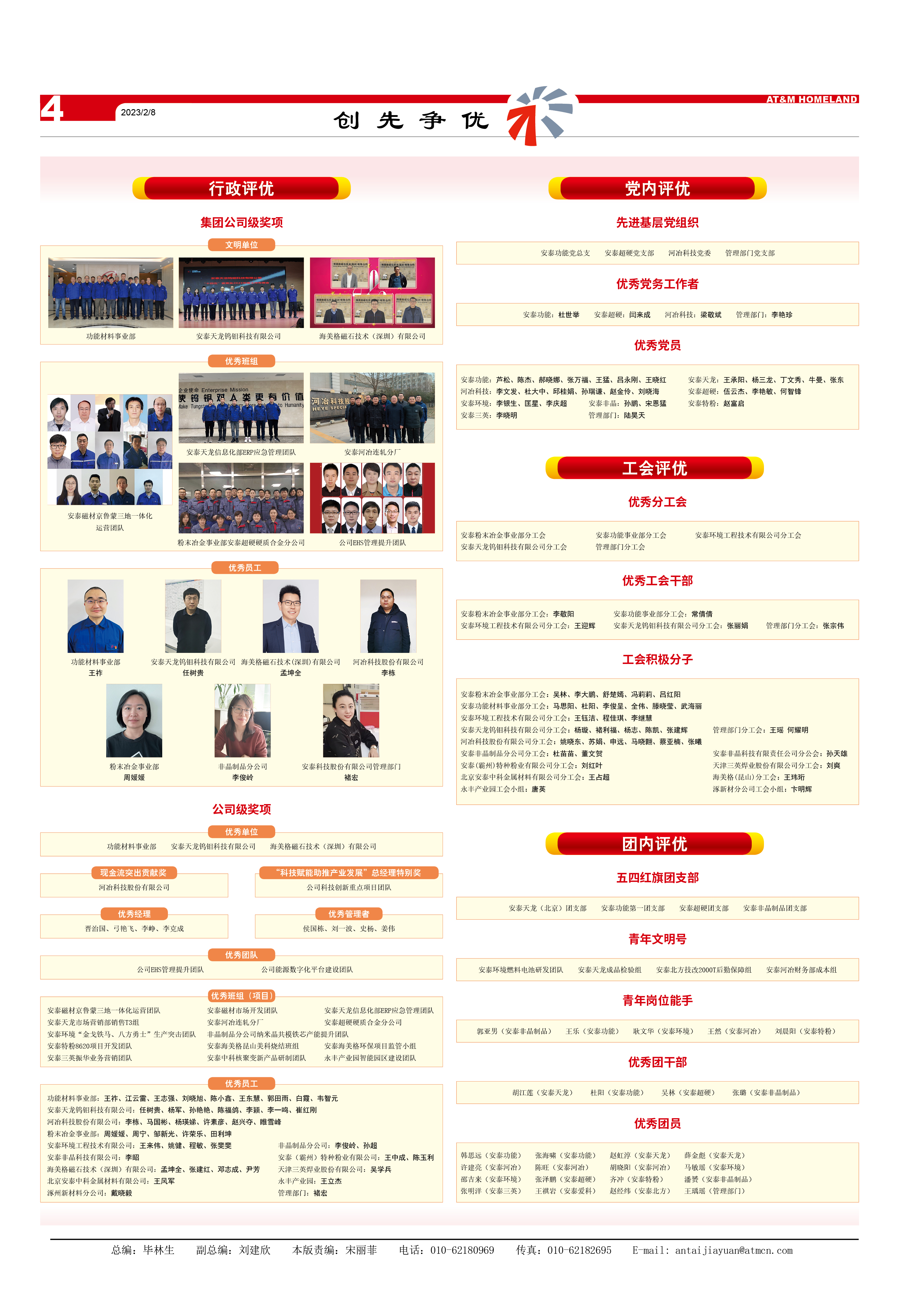 郭亞男(安泰非晶制品)、王樂(安泰功能)、耿文華(安泰環境)、王然(安泰河冶)、劉晨陽(安泰特粉)