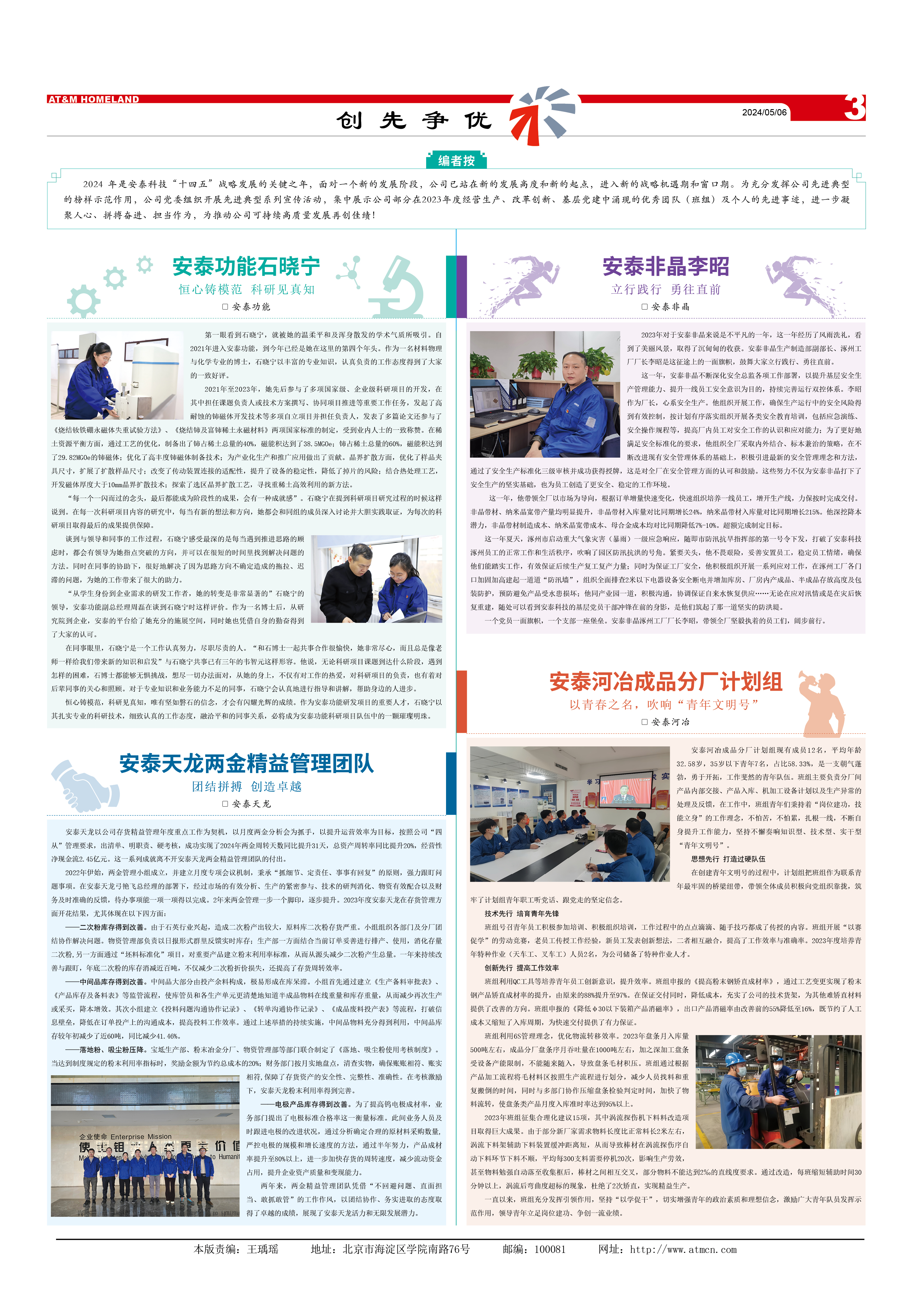 2024 年是安泰科技“十四五”戰(zhàn)略發(fā)展的關(guān)鍵之年,面對(duì)一個(gè)新的發(fā)展階段,公司已站在新的發(fā)展高度和新的起點(diǎn),進(jìn)入新的戰(zhàn)略機(jī)遇期和窗口期。為充分發(fā)揮公司先進(jìn)典型的榜樣示范作用,公司黨委組織開展先進(jìn)典型系列宣傳活動(dòng),集中展示公司部分在2023年度經(jīng)營生產(chǎn)、改革創(chuàng)新、基層黨建中涌現(xiàn)的優(yōu)秀團(tuán)隊(duì)(班組)及個(gè)人的先進(jìn)事跡,進(jìn)一步凝聚人心、拼搏奮進(jìn)、擔(dān)當(dāng)作為,為推動(dòng)公司可持續(xù)高質(zhì)量發(fā)展再創(chuàng)佳績!