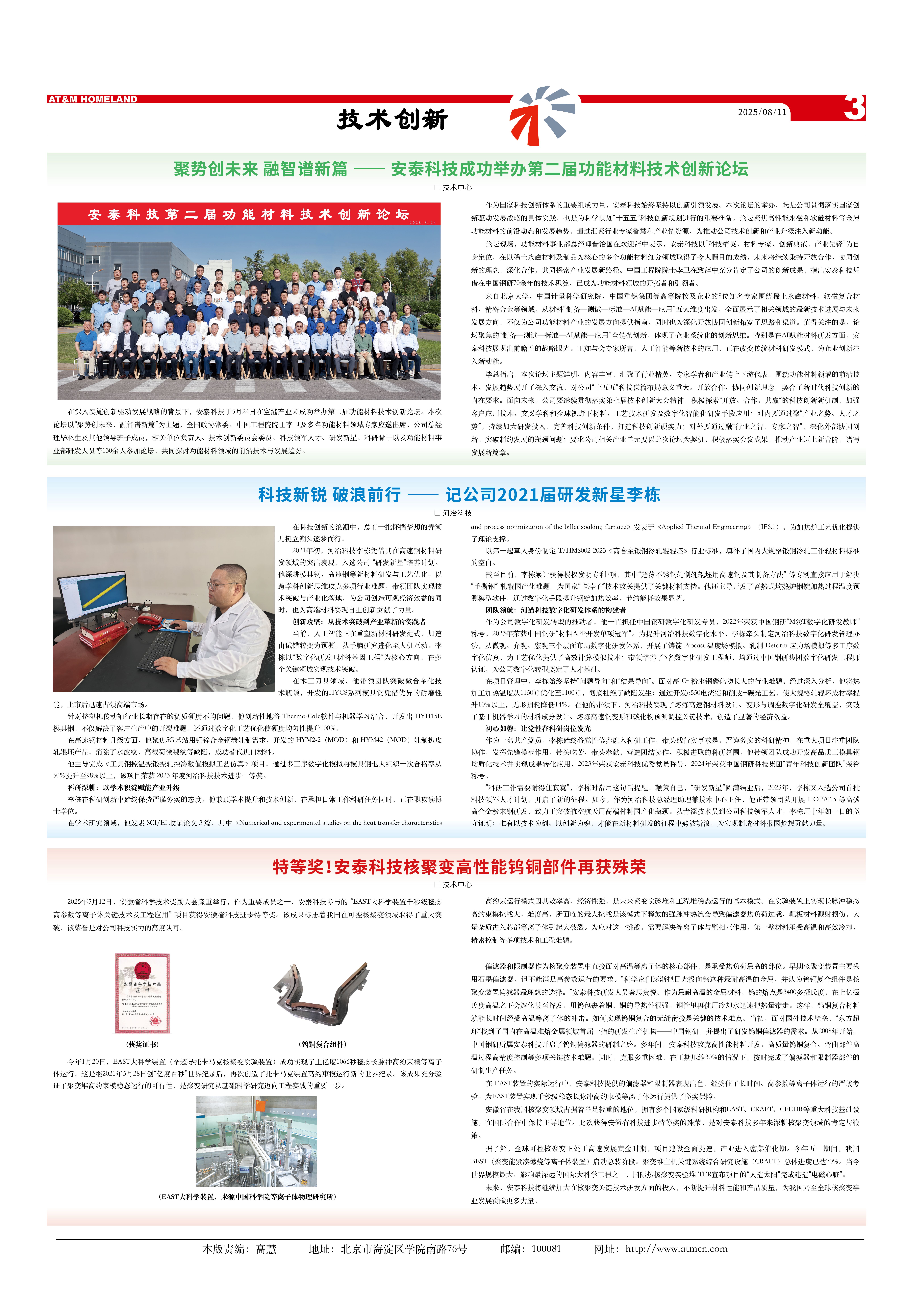 作為國家科技創新體系的重要組成力量,安泰科技始終堅持以創新引領發展。本次論壇的舉辦,既是公司貫徹落實國家創新驅動發展戰略的具體實踐,也是為科學謀劃“十五五”科技創新規劃進行的重要準備。論壇聚焦高性能永磁和軟磁材料等金屬功能材料的前沿動態和發展趨勢,通過匯聚行業專家智慧和產業鏈資源,為推動公司技術創新和產業升級注入新動能。